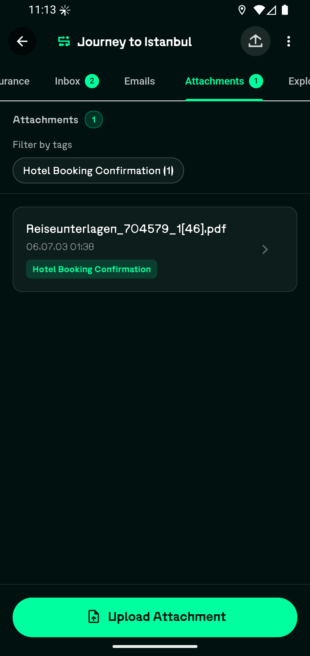 Загружайте PDF и изображения бронирований — наш ИИ извлечёт все данные и добавит их в вашу поездку.