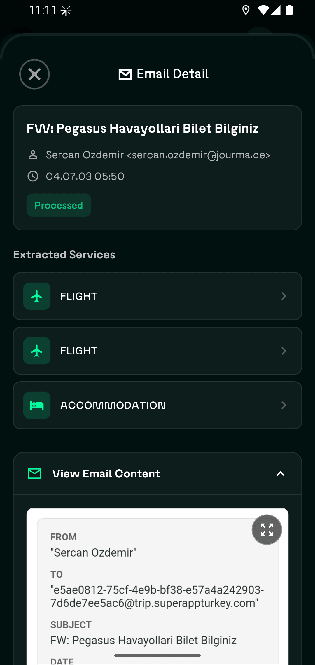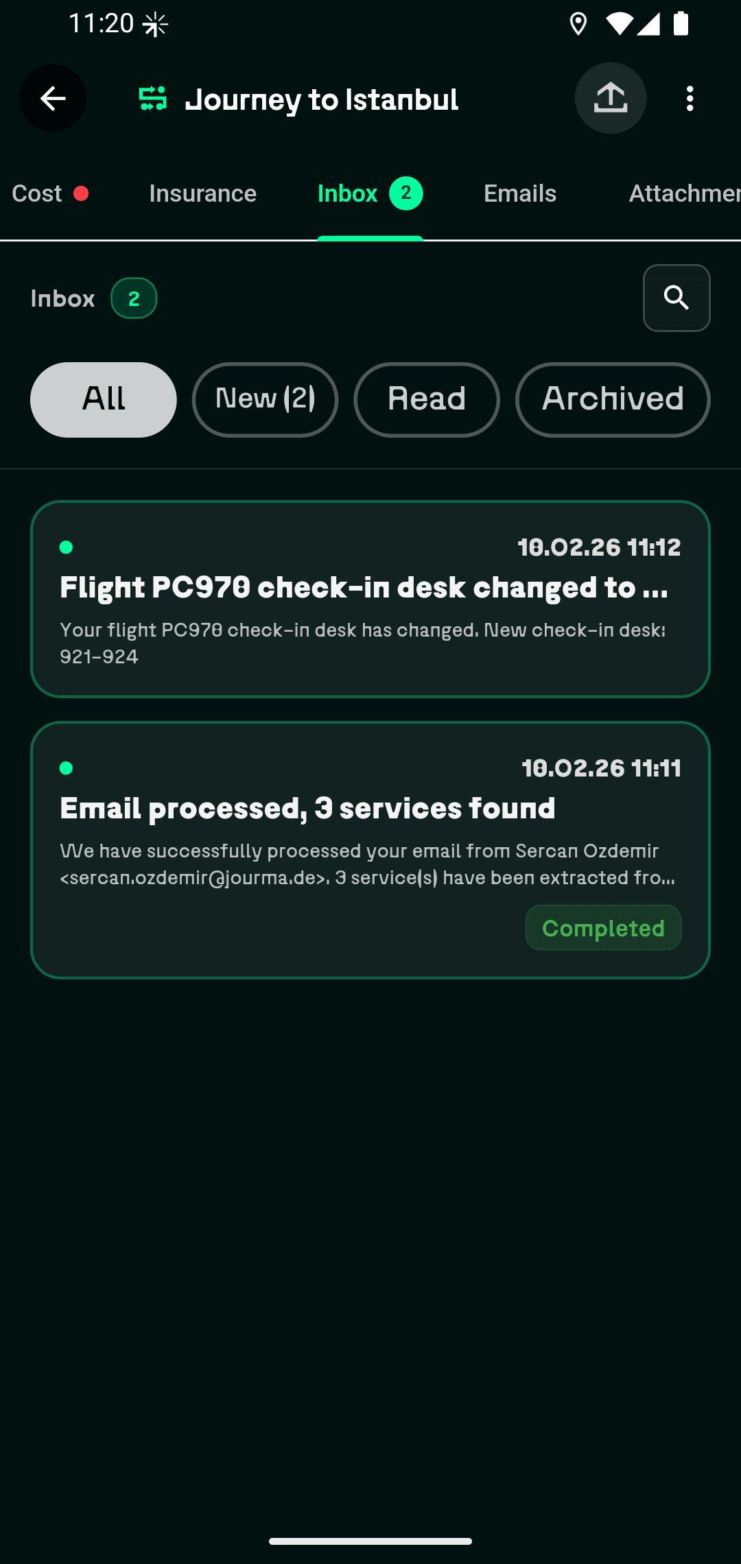 Перешлите письма с подтверждением бронирований, и наш ИИ автоматически извлечёт все данные в ваш маршрут.