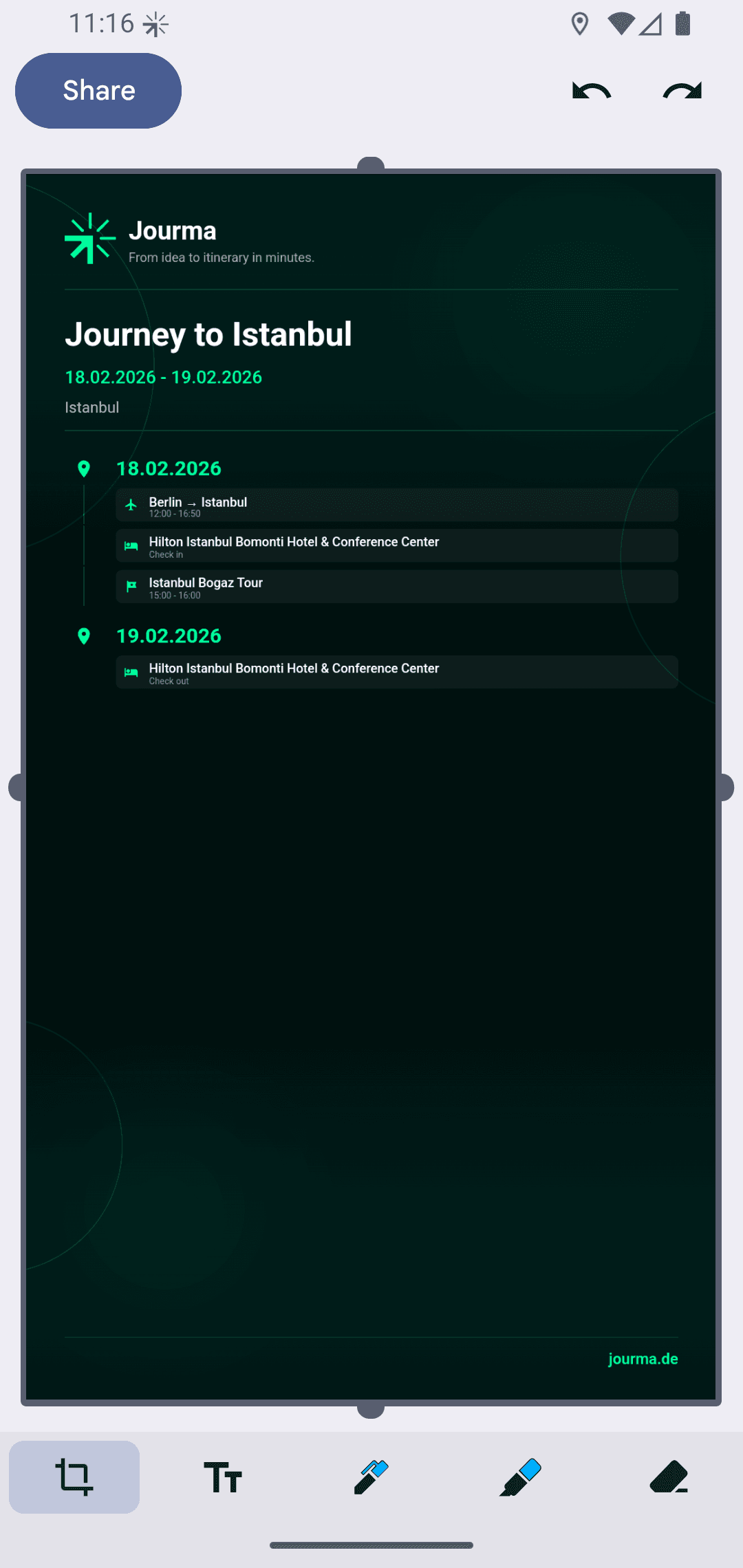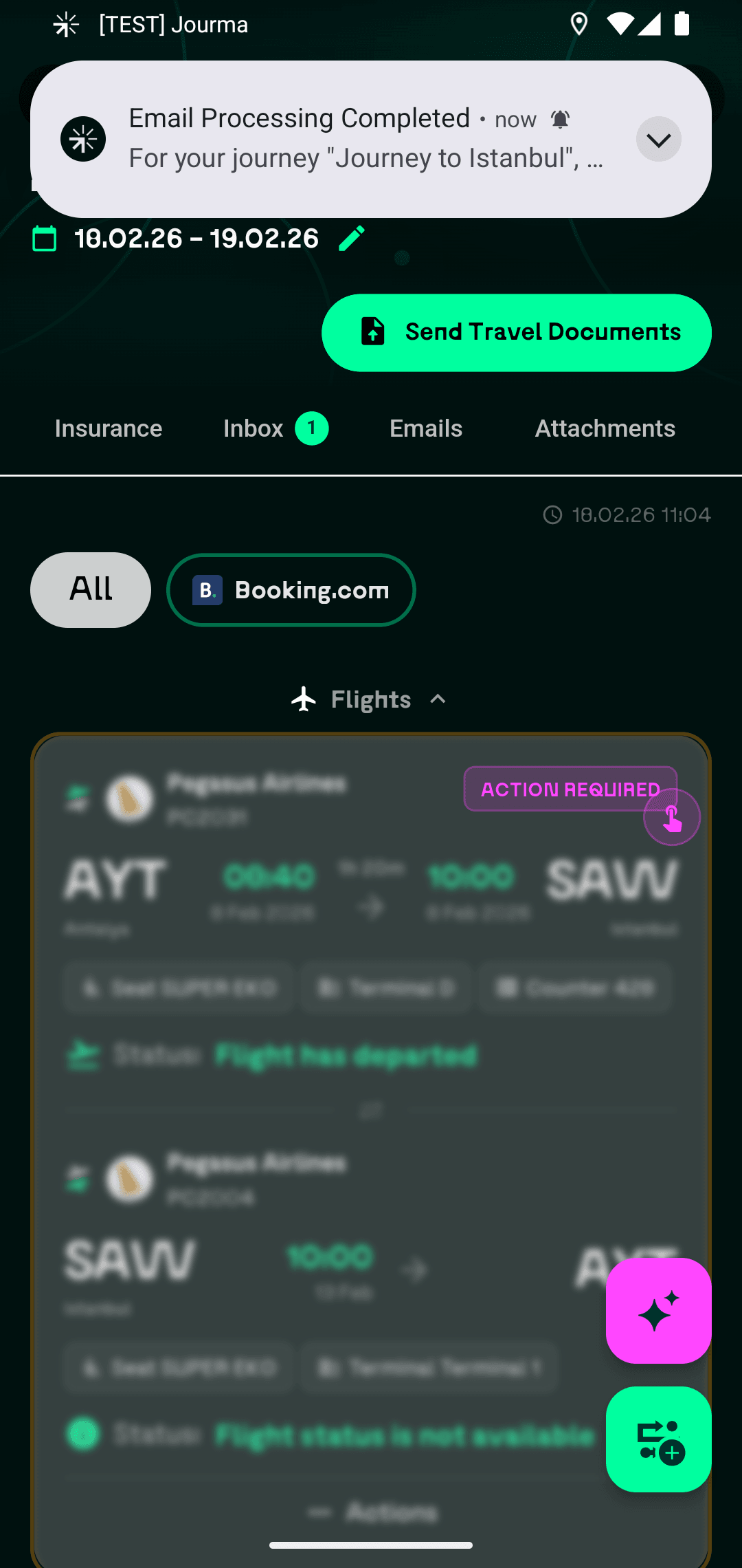 Загружайте PDF и изображения бронирований — наш ИИ извлечёт все данные и добавит их в вашу поездку.