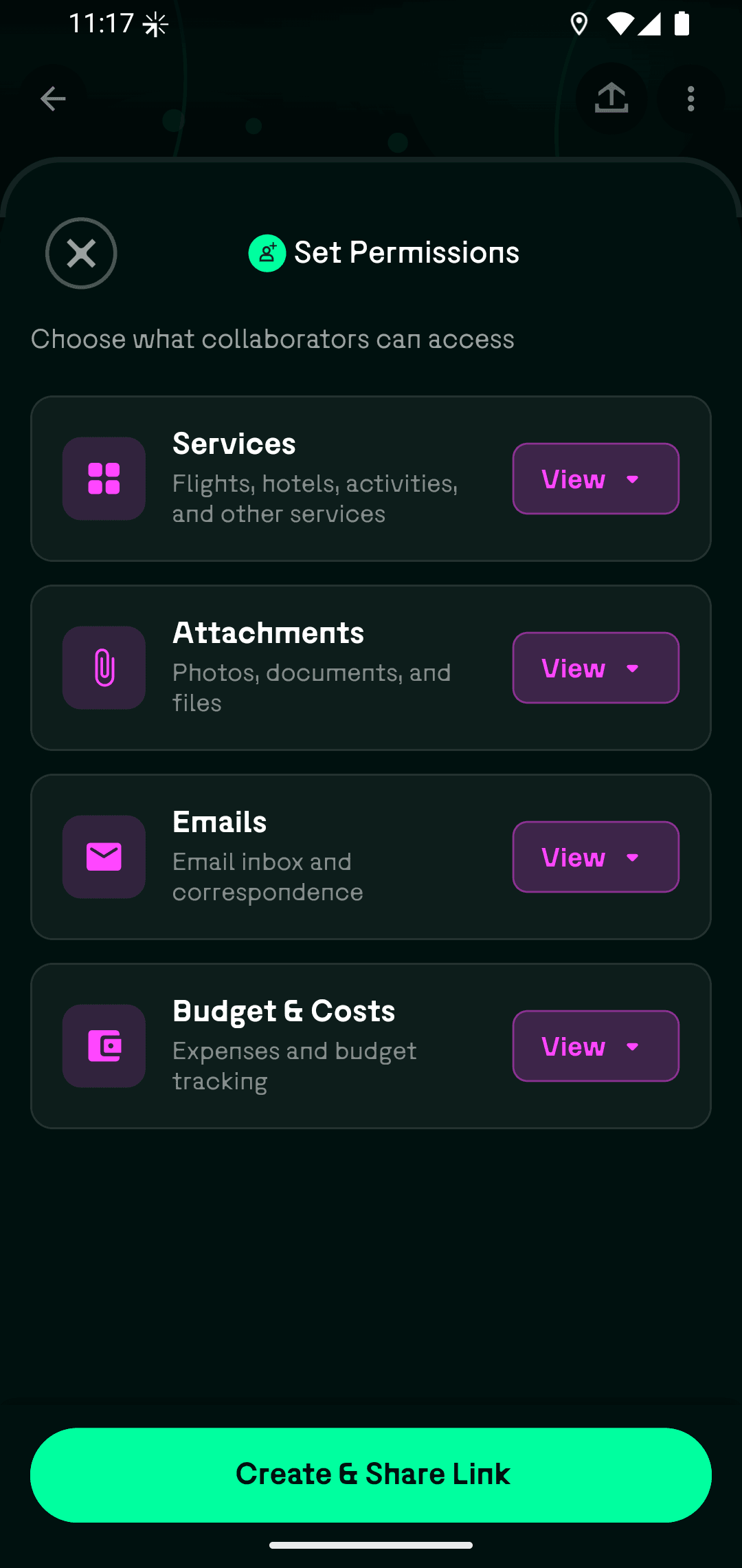 Приглашайте друзей и родственников просматривать или совместно редактировать поездку с настраиваемыми правами доступа.